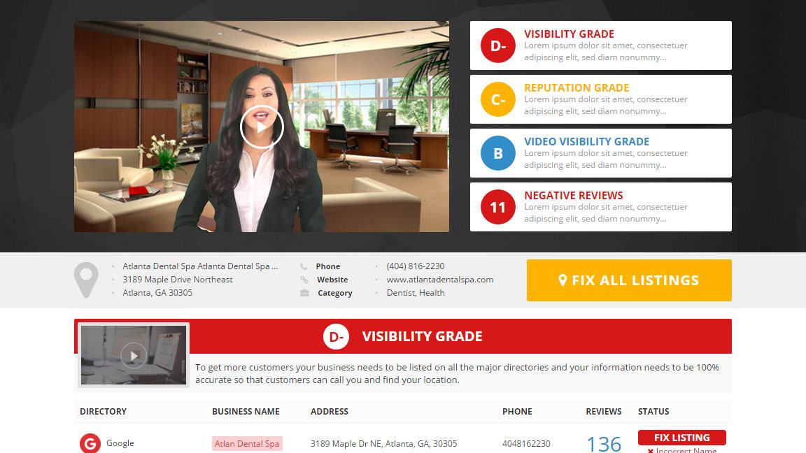 After enter your company information our proprietary software will create a comprehensive report and show you how you can fix and correct any reputation or business issues online.